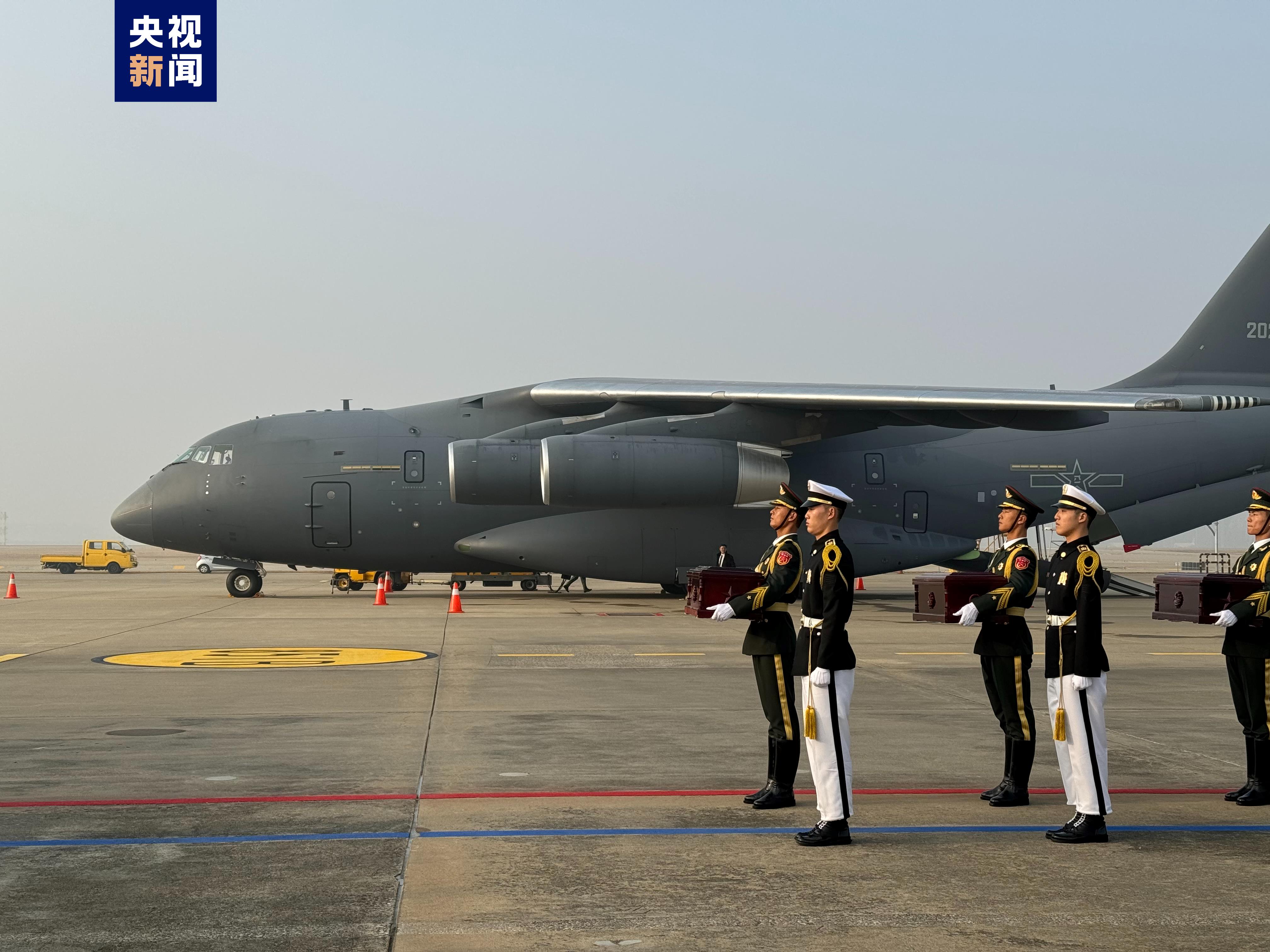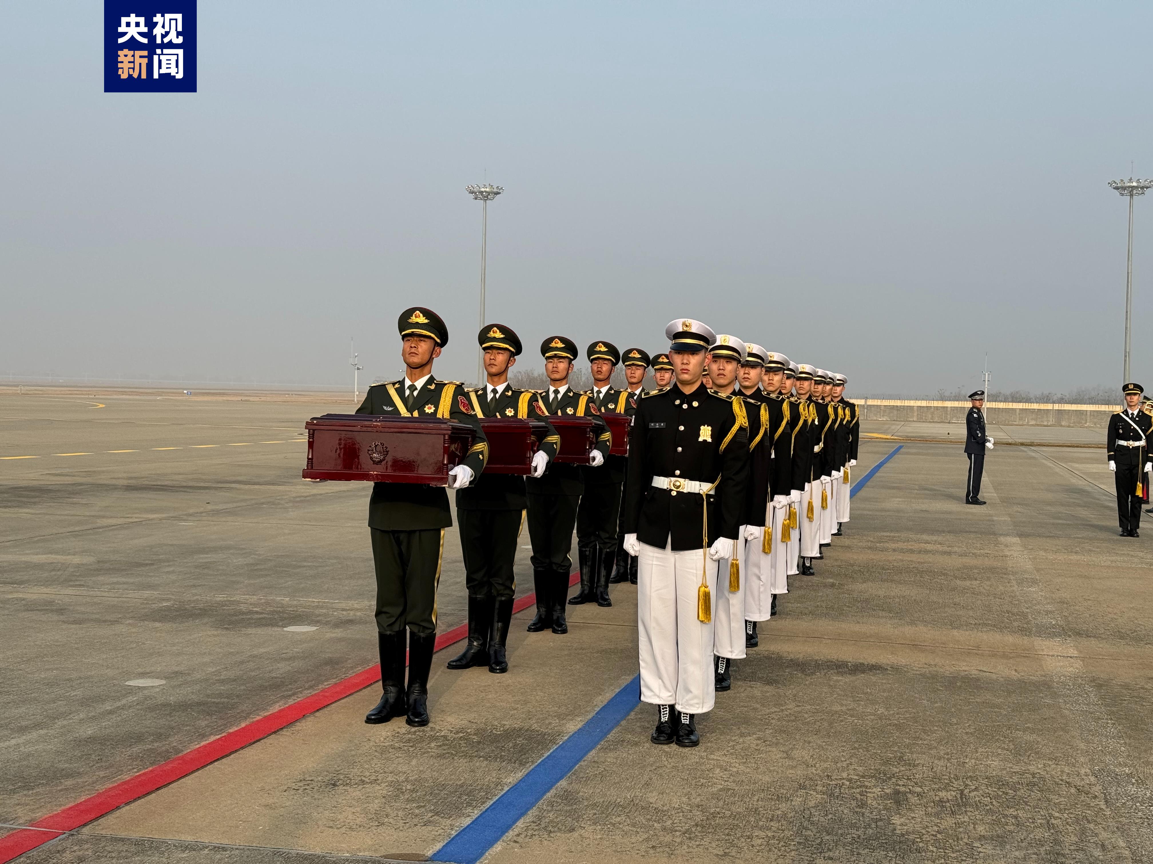 当地时间23日上午,中韩双方在韩国仁川国际机场举行第十批在韩中国人民志愿军烈士遗骸及遗物交接仪式。此次韩方共向中方移交25名中国人民志愿军烈士遗骸及335件遗物,交接仪式后烈士遗骸将搭乘中国空军运-20专机返回祖国。